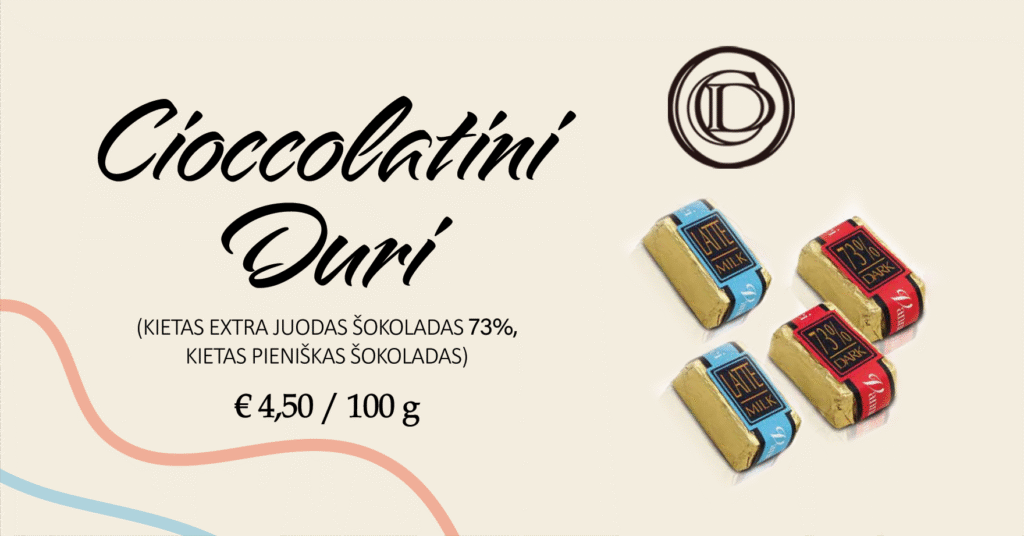 Kiekvienas kąsnis čia – tarsi maža kelionė po Italijos skonio pasaulį, atskleidžianti, kaip atrodo tikra šokolado meistrystė.